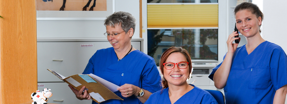 Ohne gut geschulte Mitarbeiterinnen und Mitarbeiter wäre eine qualifizierte Behandlung und Betreuung von Patienten nicht möglich. Dem Personalstamm der Praxis gilt deshalb an dieser Stelle ein besonderer Dank. Besonders stolz sind wir auf die Tatsache, daß nahezu alle unsere Arzthelferinnen ihre Ausbildung bei uns begonnen und erfolgreich abgeschlossen haben und der Praxis die Treue halten. Wir werten dies als Ausdruck für eine gute Zusammenarbeit und ein angenehmes Arbeitsklima.